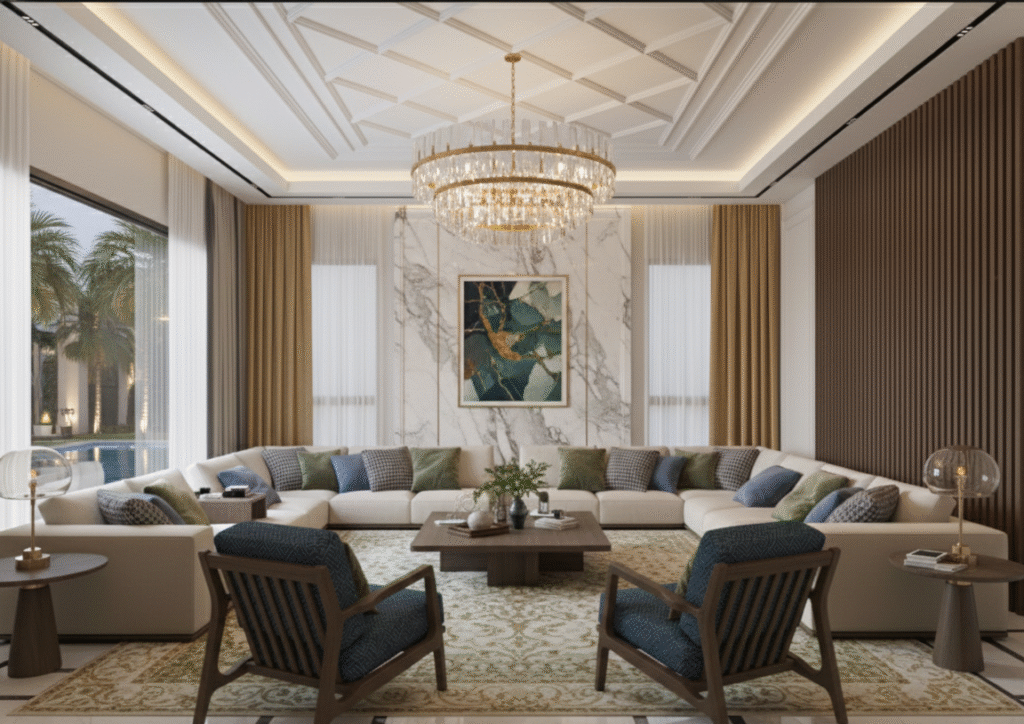 تصميم يجمع بين الأصالة النجدية والروح العصرية في لوحة واحدة يمثّل مشروع مجلس فيلا الدرعية أحد الأعمال التي تُجسّد رؤية AJ Design في مزج التراث مع الحداثة بأسلوب راقٍ ومتوازن.بدأت